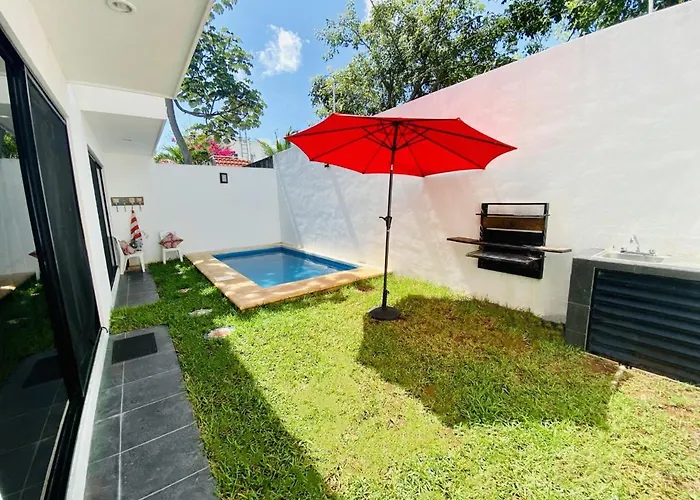 Set close to La Gran Plaza, Cozy Home With Private Pool is 2.5 km from Cancun. Featuring a Jacuzzi and an outdoor swimming pool, the 3-bedroom villa is located in the centre of Cancun.
